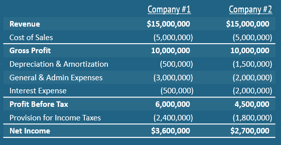 순이익이 첫번째 회사가 높아서 더 많은 현금을 만들어 냈다고 착각할 수 있으나, EBITDA를 구해보면 두번째 회가 높은것을 알 수있다. 두번째 회사가 더 효율적으로 운영되었다는 것을 알 수 있다. 하지만 EBITDA에는 때로는 기타 추가비용이 포함된 값일 수 있으니 조심해야 한다.