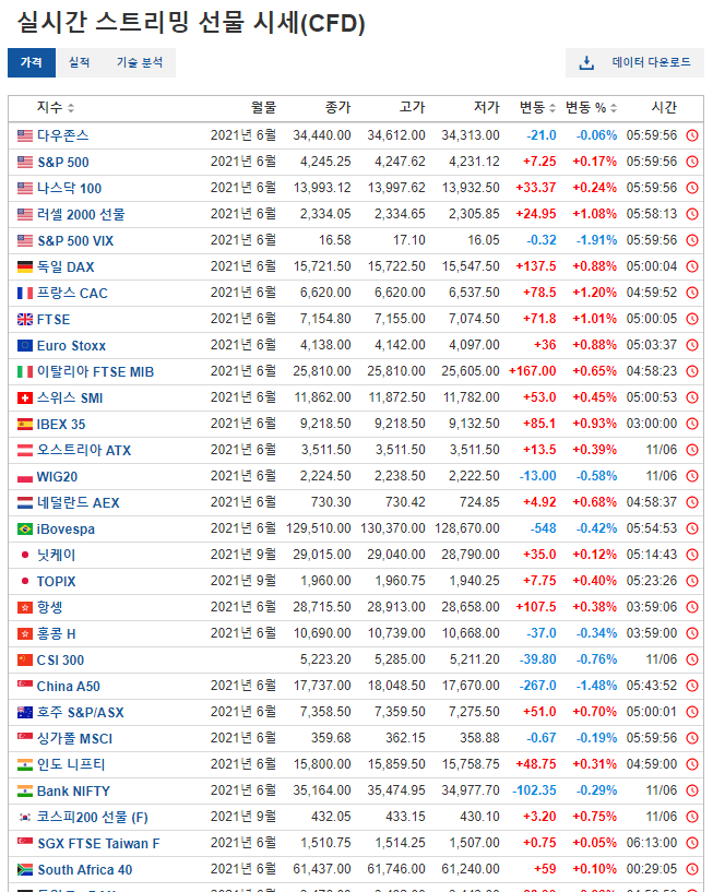 https://kr.investing.com/ 인베스팅닷컴, 한글화(? ㅎㅎ) 가 잘 되어 있어서 눈에 확들어옵니다. ㅎㅎ 저는 주로 나라별 주가 선물 인덱스등을 볼 때 찾아오고, WTI등 원자재 상품가격을 볼 때 찾아 옵니다.