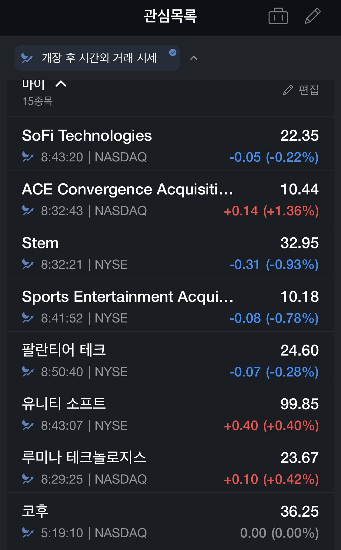 제가 오늘 소개해드리는 모든 site들은 모바일 앱도 있지만 특히 Investing 어플에서 아주 유용한 것은 시장전, 시간외 가격으로만 한눈에 볼 수 있게 해주는 기능이 있는데 아주 좋습니다. 아침에 일어나서 내 미국주식들이 시장마감 후 시간외 거래에서 가격이 어떻게 형성되었는지 바로 볼 수 있어서요. 이것으로 그날 저녁의 기분이 달라집니다. ^^